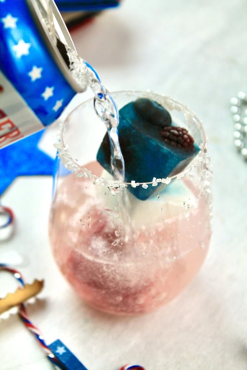 I top my festive Fourth of July drinks with berry flavor sparkling water. However, if not available or if desired, you could alternatively top this drink with ice-cold dry champagne or prosecco and fresh fruit, just like I did with these Red White and Blue Prosecco Cocktails! Be sure to serve very cold.