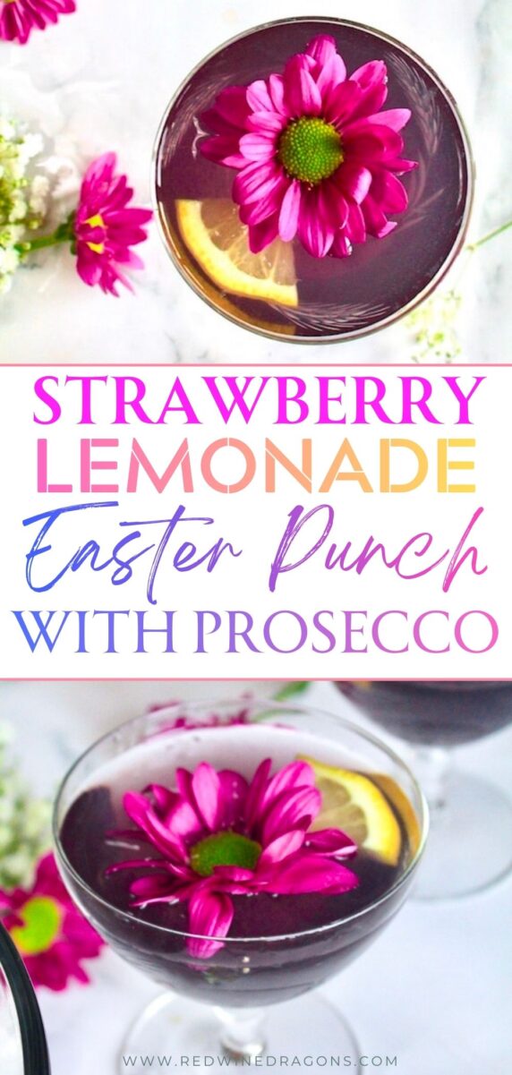 Don’t let the Easter bunny get in on this one… He’ll have a wobbly walk back to Easter Island! Besides, he’s got quite a few baskets to deliver before he can kick back with a bit of this fun and festive purple party punch! This easy strawberry lemonade prosecco Easter punch recipe is the perfect colorful mix of juices and spirits for a cool Easter cocktail that will add a little hop (and pop) to your holiday!