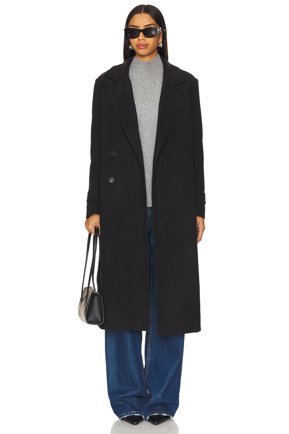 An elegant black topcoat makes the look happen creating long dark lines that build height and sophistication. Pair with your favorite little black dress and a killer black boot.
