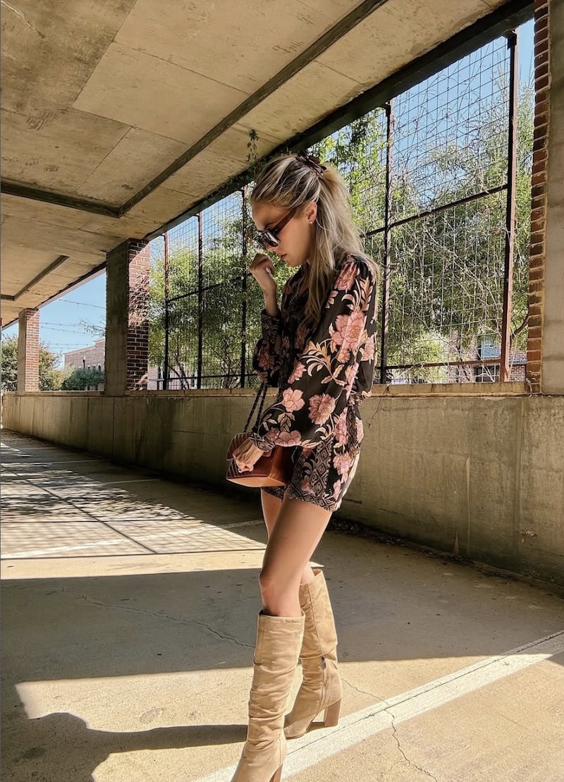 9. A Flowy Flower Print Dress and Suede Boots