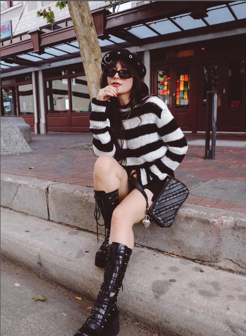 Don’t forget about that striped sweater. Black and white come to the rescue again with a simple striped sweater, a black skirt and that bossy statement boot that really makes the outfit. A knee high combat boot or even a stylish biker platform boot will really seal the deal.