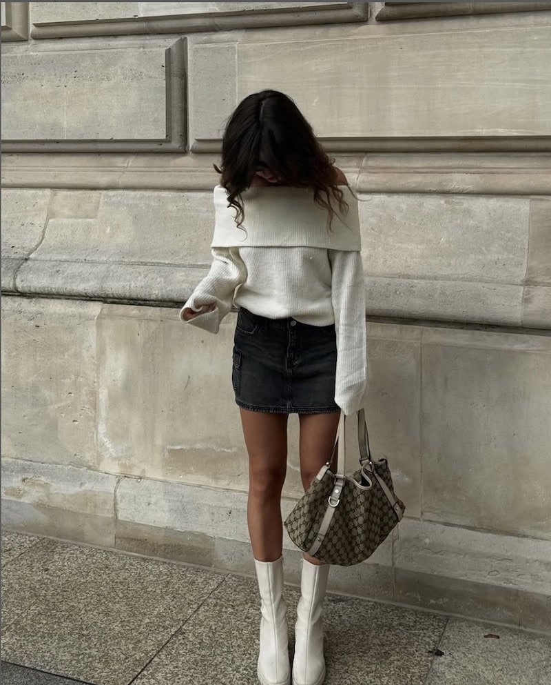 12. Denim Mini Skirt and a Cozy Sweater