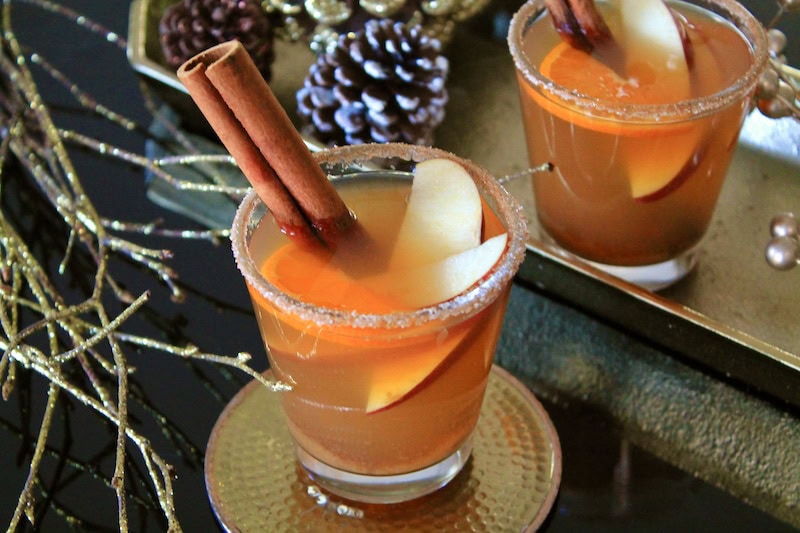 hot christmas drinks with apple cider and bourbon