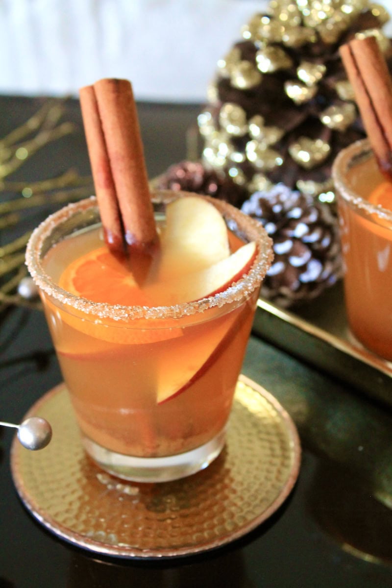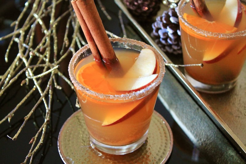 hot christmas drinks with apple cider and bourbon