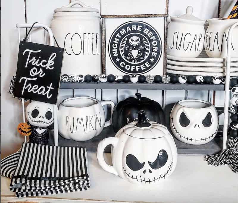 High contrast black and white coffee containers wake up the coffee bar area just in time for Halloween.