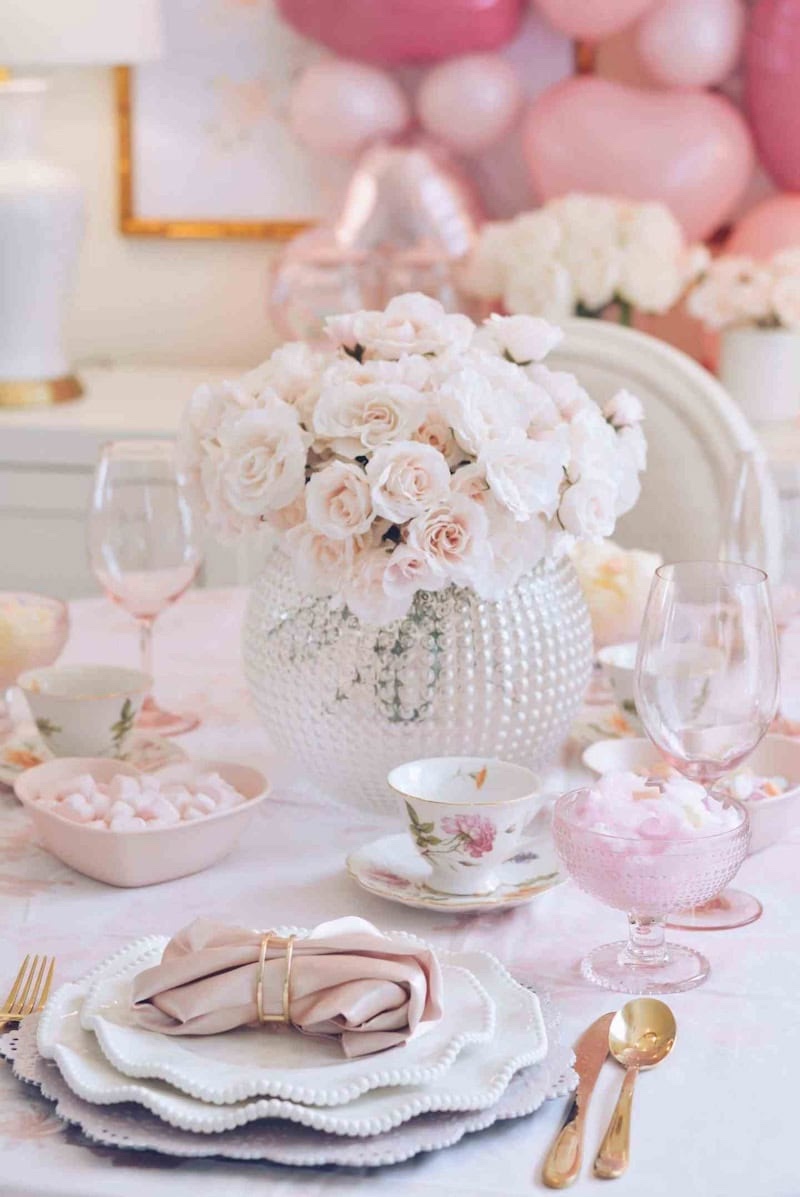 5. Floral Bubble-Gum Pink Valentine’s Day Table